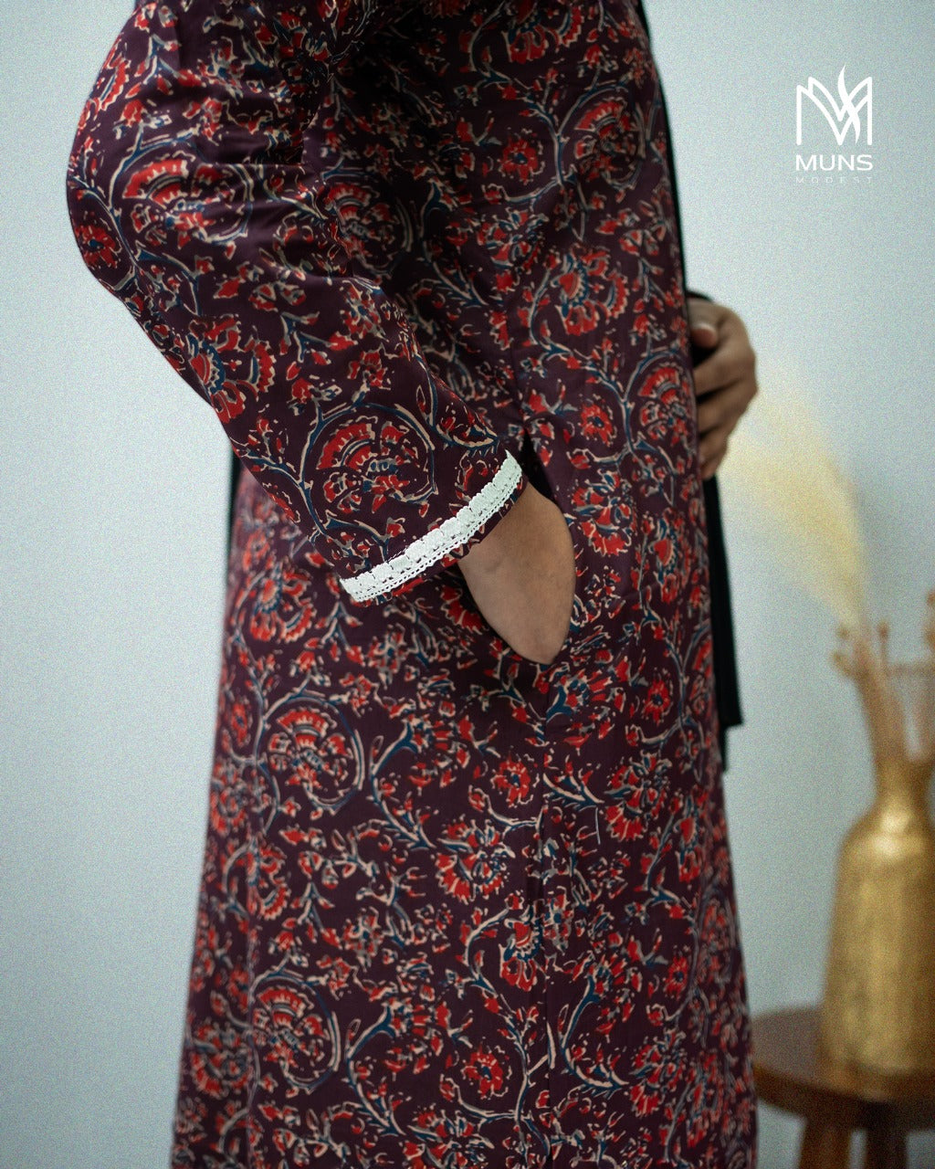 - lace work on sleeves
